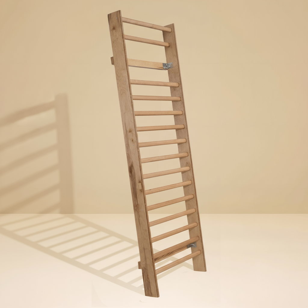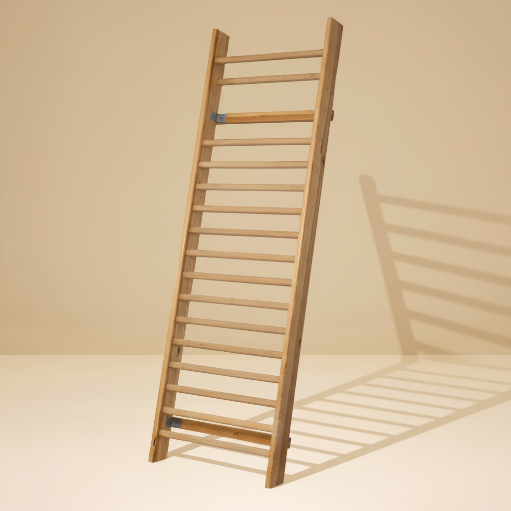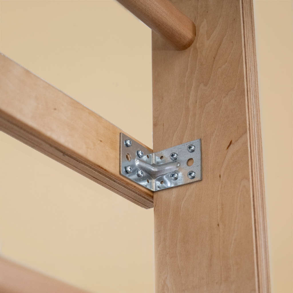 Az oldalak fenyő, a fokok bükk fűrészáruból készülnek, amelyek hengeres kiképzésűek az oldal elemhez csappal illeszkednek ragasztottan, falfelőli részen merevítő átkötéssel csavarral rögzítve. A farészek finoman csiszoltak, az élek tompítottak. Az oldallap és a fokok két rétegben kopásálló színtelen matt lakkal vannak szórva.