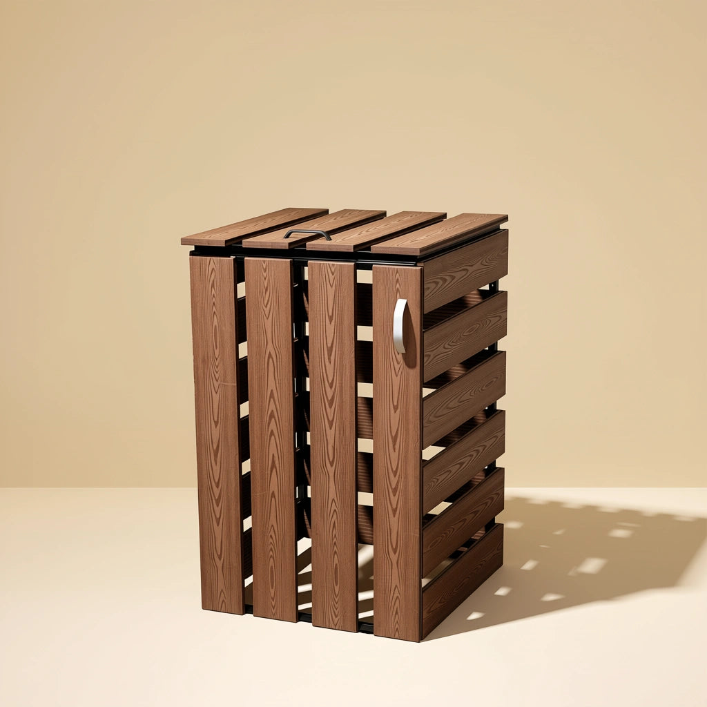 Ez a WPC kukatároló praktikus és esztétikus megoldást kínál a szemetesek rendezett és diszkrét elhelyezésére. A WPC (fa–műanyag kompozit) anyag ötvözi a fa természetes megjelenését a műanyag tartósságával, így ideális választás udvarra, kertbe vagy társasházi környezetbe.